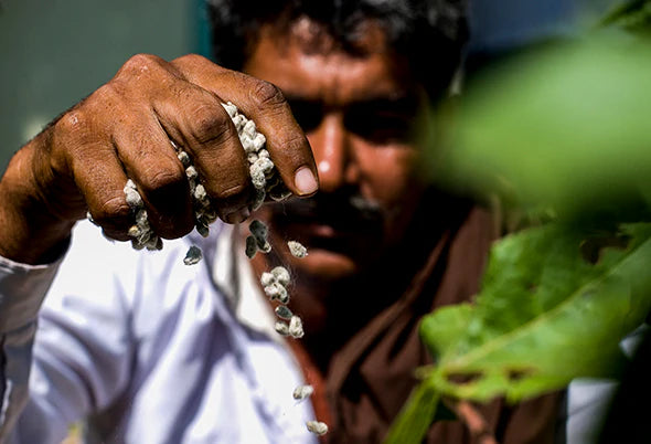 During the growing & processing of our cotton, we don't use pesticides, chemical fertilizers or dyes.